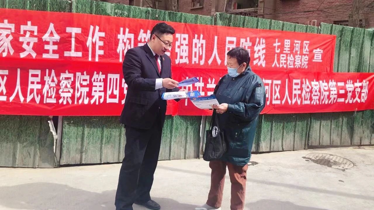 近日,兰州市七里河区检察院干警走进秀川社区、崔家崖社区,以“加强国家安全工作 构筑坚强的人民防线”为主题开展“党建+普法+服务”活动,向群众发放《全民国家安全教育日》宣传册、防范电信诈骗宣传资料,重点讲解《刑法》中关于危害国家安全犯罪的法律知识,介绍防范电信诈骗和养老诈骗的相关措施,现场解答群众咨询,增强群众法治观念。