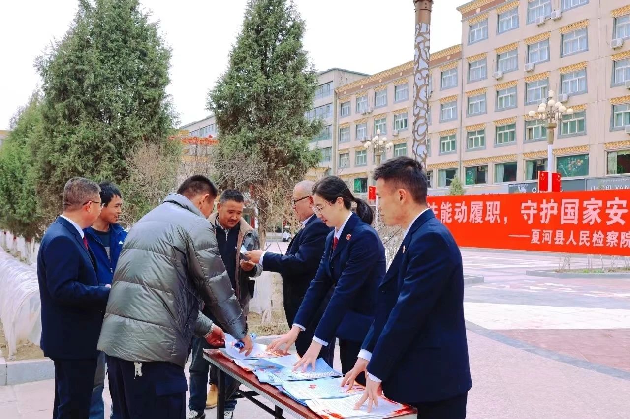 4月14日,夏河县检察院组织干警在街心花园开展“依法能动履职,守护国家安全 ”主题宣传活动,检察干警向过往群众发放普法宣传材料,并用通俗易懂的语言对前来咨询的群众耐心、细致地释法送法,营造浓厚的送法宣传氛围。