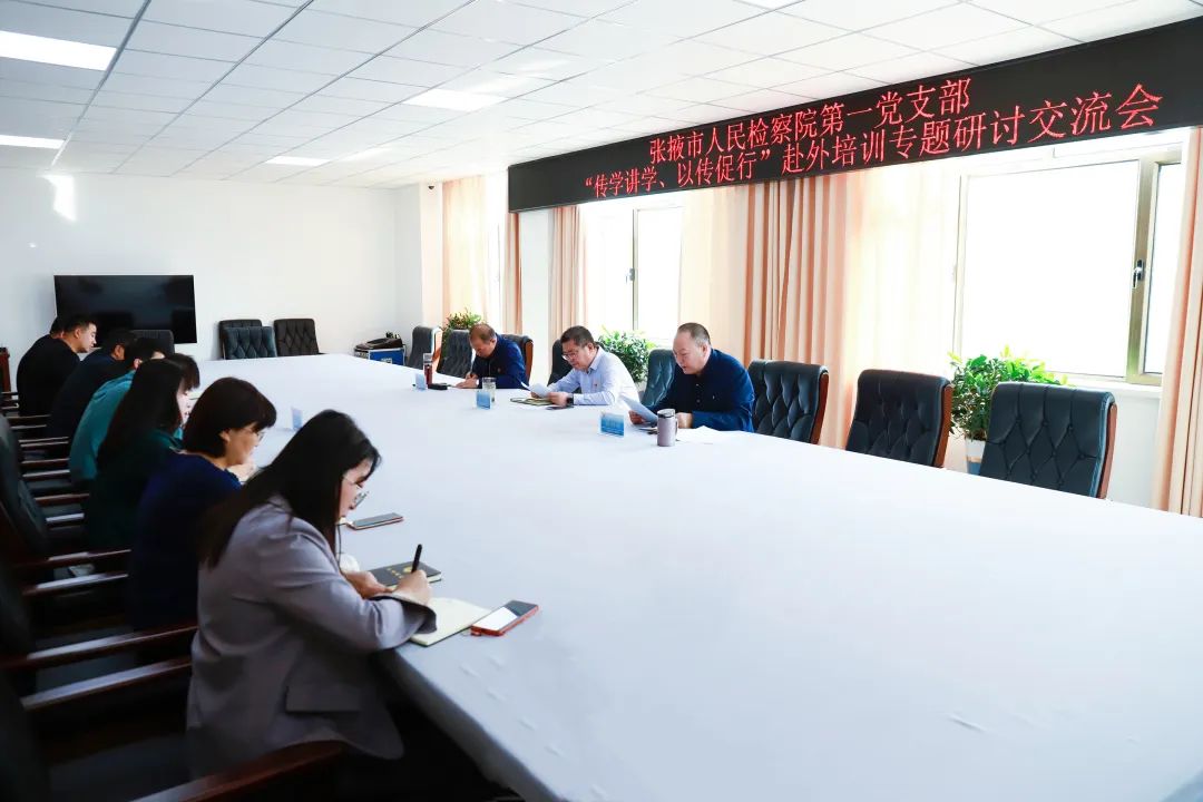 4月23日至4月29日,张掖市检察院组织全市两级检察院60名业务骨干,赴国家检察官学院四川分院,开展了为期5天的综合业务素能培训。为做好赴外培训后半篇文章,持续扩大培训覆盖面,推动优质培训资源共享,实现“一人培训、N人受益”,近日,张掖市检察机关以落实“传学讲学、以传促行”培训机制为依托,结合“三抓三促”行动,聚焦“抓学习促提升”,围绕“事业要发展,我该谋什么”开展了九场(次)专题研讨会。