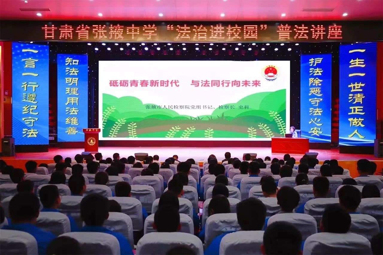 “天将降大任于斯人也,必先苦其心志,劳其筋骨,饿其体肤,空乏其身……”,在张掖中学教室内,同学们轻声吟诵,场内互动共鸣,气氛高涨。5月25日,张掖市检察院党组书记、检察长史莉受聘担任该校法治副校长,为师生送去一堂生动的法治课,拉开全市“检爱同行,共护花开”检察开放日的序幕。