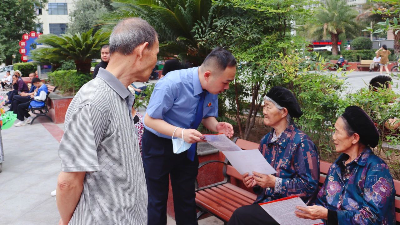 陇南市检察院干警到武都区兰天·莲湖广场、康县吊桥沟村等地开展打击非法集资法治宣传活动,针对当前非法集资常见的表现形式、作案手法以及“保健品骗局”“投资养老骗局”“中奖骗局”等养老诈骗手段向过往群众进行了详细讲解,同时对现场群众提出的问题予以一一解答。