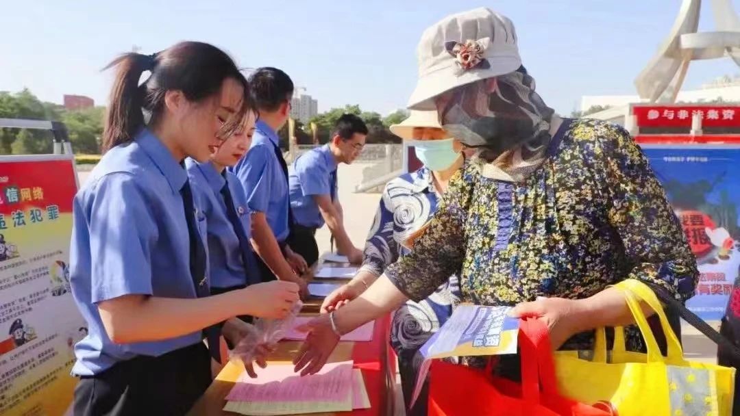 金昌市检察院干警在市人民文化广场开展防范非法集资宣传活动,通过发放宣传手册、讲解非法集资典型案例及防骗知识等形式,向群众宣传非法集资活动的表现形式、规律特点和防范对策,以案说法揭露犯罪分子的惯用伎俩,传授防骗“锦囊妙计”,提醒广大群众警惕贷款、非法融资陷阱,并叮嘱老年人勿轻信高额返利养老项目,谨防上当受骗。