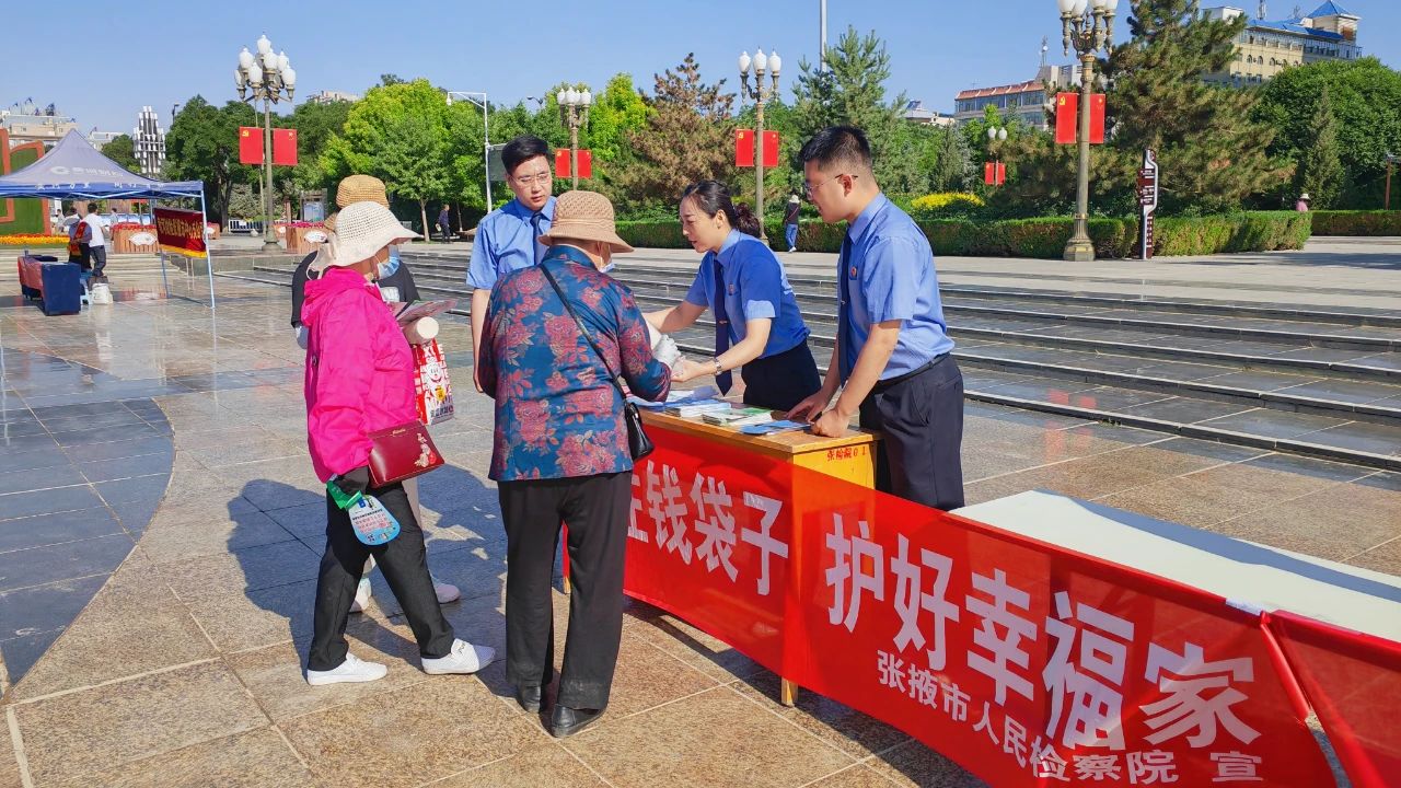 张掖市检察院采取“线上+线下”同步宣传的方式,在“线上”开设防范非法集资宣传月系列普法小课堂,普及非法集资的表现形式、社会危害、刑事处罚及预防方法;线下在12309检察服务中心群众接待、法律咨询窗口,摆放防诈反诈宣传图册,同时,与本地防范和处置非法集资工作领导小组其他成员单位、各银行、保险公司在集中宣传点联合开展宣传活动。