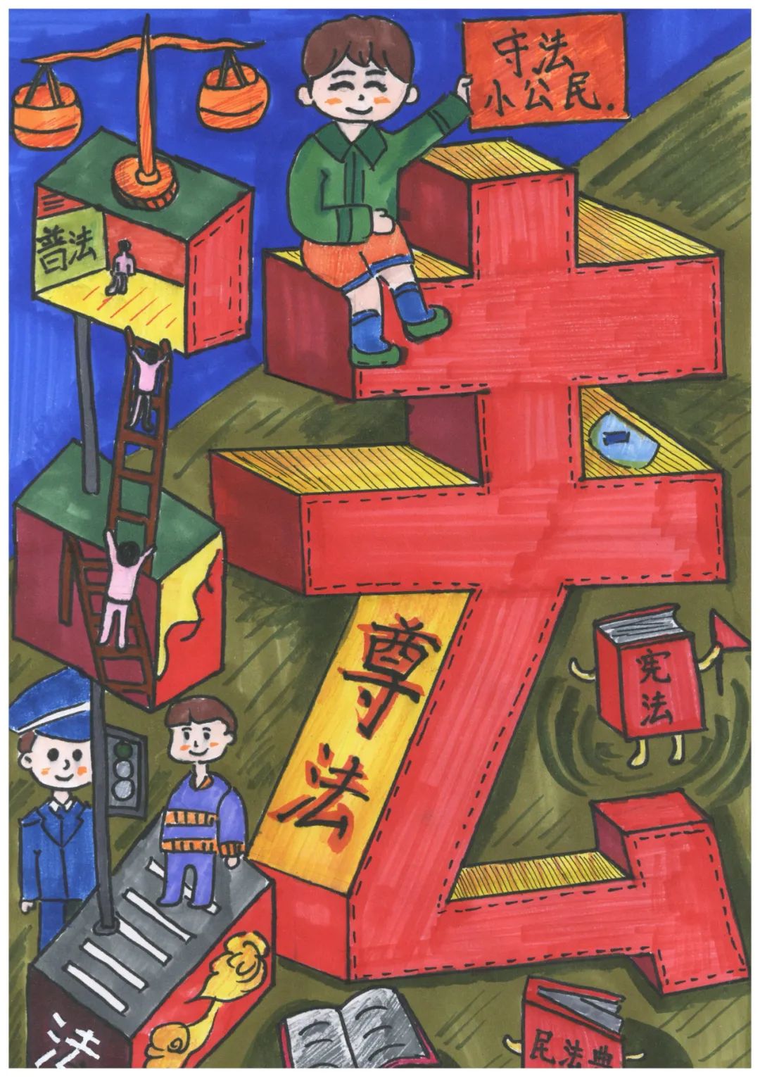 今天,我们看到孩子们用手中的画笔,记录着颗颗“法治种子”开花、结果的美好历程。