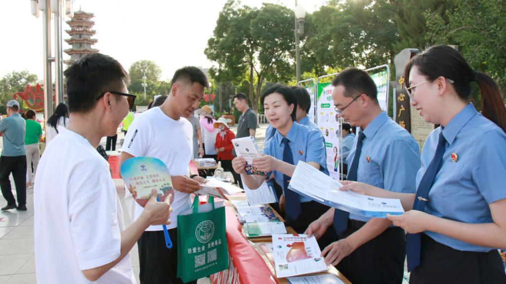 金昌市检察院组织干警在市人民文化广场集中开展禁毒宣传活动,向广大群众讲解面临的毒情形势及新型毒品种类、毒品危害、辨识方法等,揭示毒品对个人、家庭和社会的严重危害,告诫群众做自己健康的第一责任人,拒绝毒品诱惑,共享健康美好生活。