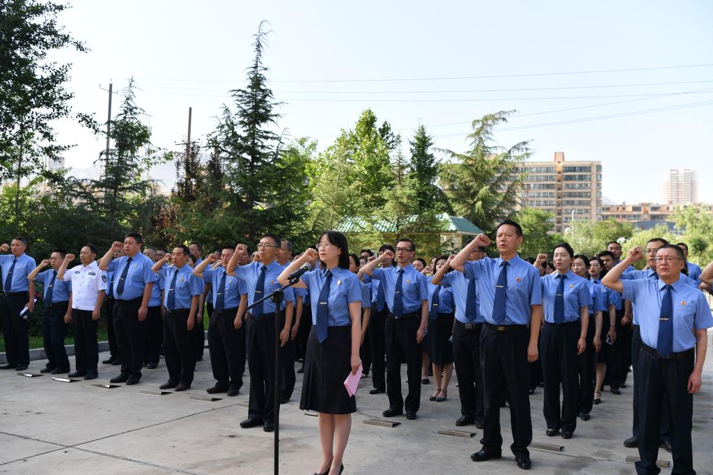 当天该院举行了庆祝建党102周年升旗仪式,全体党员干警在办公楼前身着检察制服、整齐列队,齐声高唱国歌,向国旗行注目礼,并面向党旗,重温入党誓词。