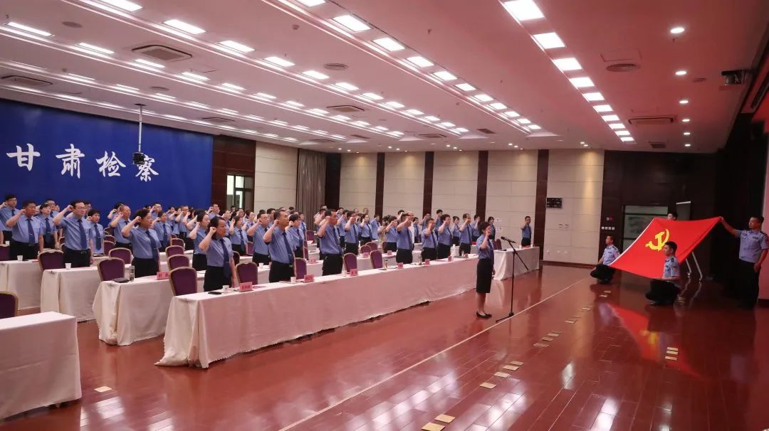 “我宣誓,我志愿加入中国共产党,拥护党的纲领,遵守党的章程……”仲夏时节,骄阳似火,在“七一”建党节来临之际,甘肃各地检察机关纷纷开展主题党日活动,重温入党誓词。