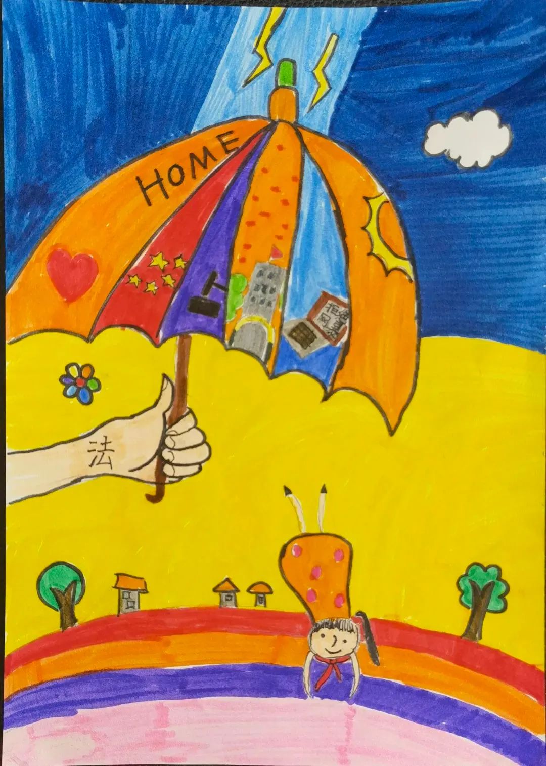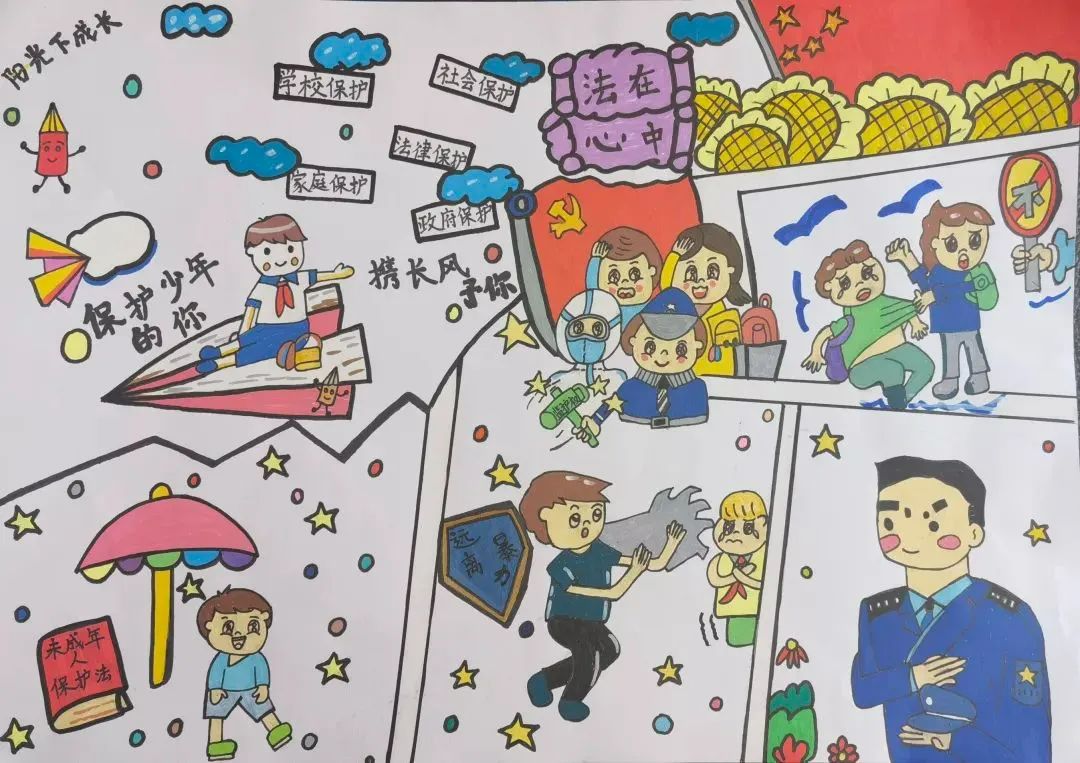 成长路上,有家庭、学校、社会、网络、政府为我们护航,此作品希望更多人关心未成年人权益保护,通过学法、守法、懂法了解未成年法治教育的重要性,让我们健康、快乐成长,拥有一个美好的童年。