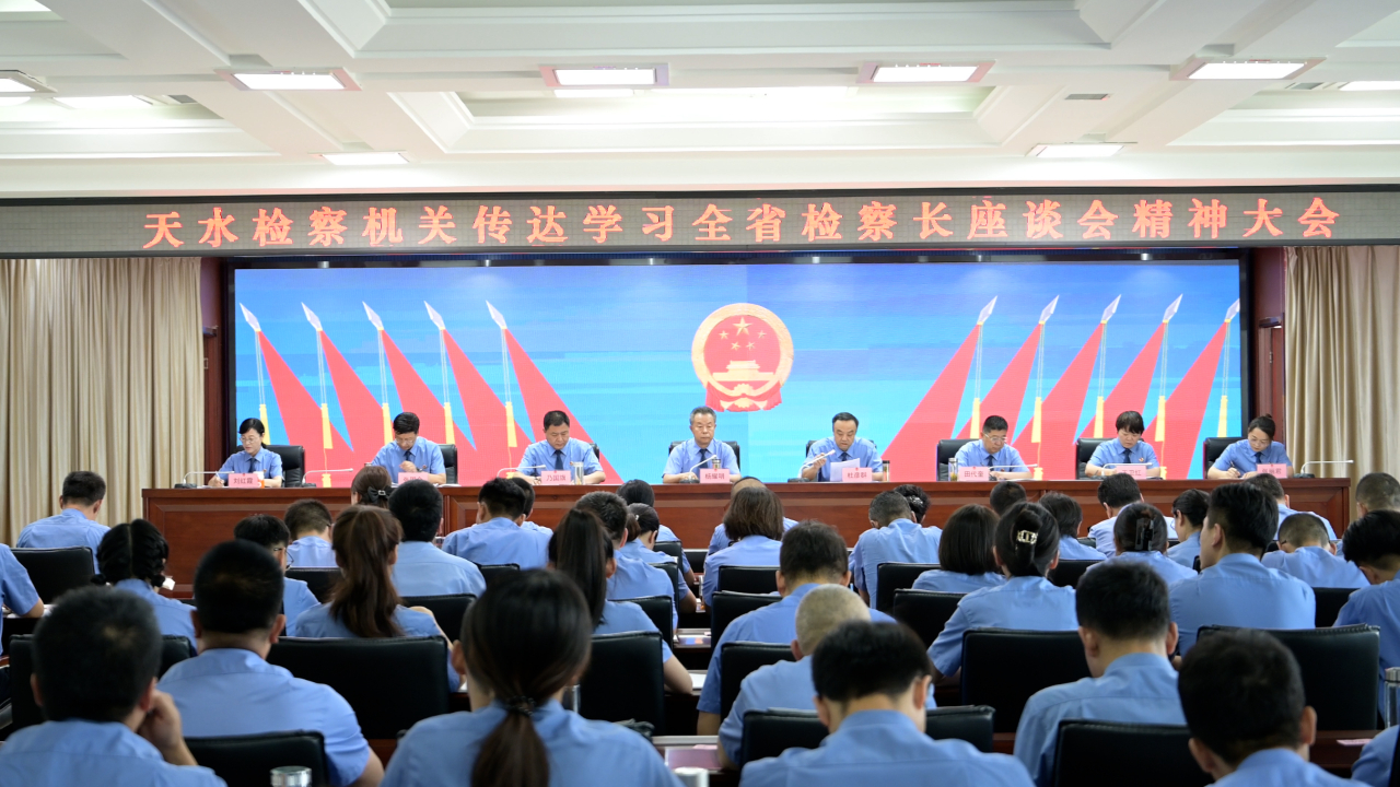 8月10日,天水市检察院召开两级院视频会,专题传达学习全省检察长座谈会精神。该院党组书记、检察长杨耀明要求,要准确把握立身之本,推动“四大检察”全面协调充分发展,在坚定自信中强化法律监督;要准确把握发力方向,以“七个更有力”服务全市大局,在能动司法中助推高质量发展;要准确把握奋斗目标,以“为大局服务、为人民司法、为法治担当”的新作为筑牢政治忠诚,在高质效办好案件中彰显价值追求;要准确把握改革动向,在创新发展中激发动能活力;要准确把握人才需求,一体推进从严管理监督和鼓励担当作为,努力锻造过硬检察铁军。