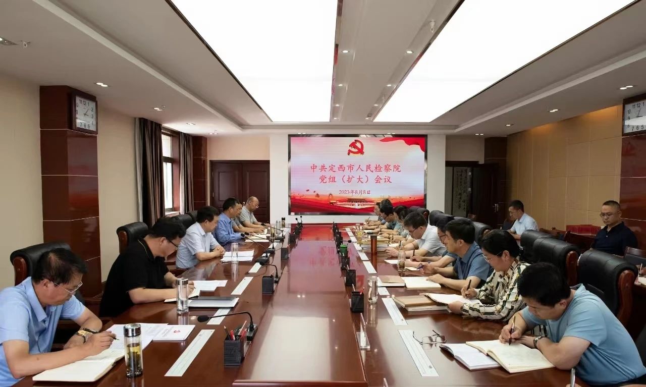 8月8日,定西市检察院党组书记、检察长石占全主持召开党组(扩大)会议,传达学习全省检察长座谈会精神,研究部署贯彻落实意见。会议要求,要充分认识、深入领会全省检察长会议的重要意义,全面履行检察职能,确保学深悟透、融会贯通。要深耕主责、做强主业,深刻把握检察履职办案的基本价值追求,及时梳理盘点工作进展情况,为完成全年工作任务打下坚实基础。要围绕澳门彩