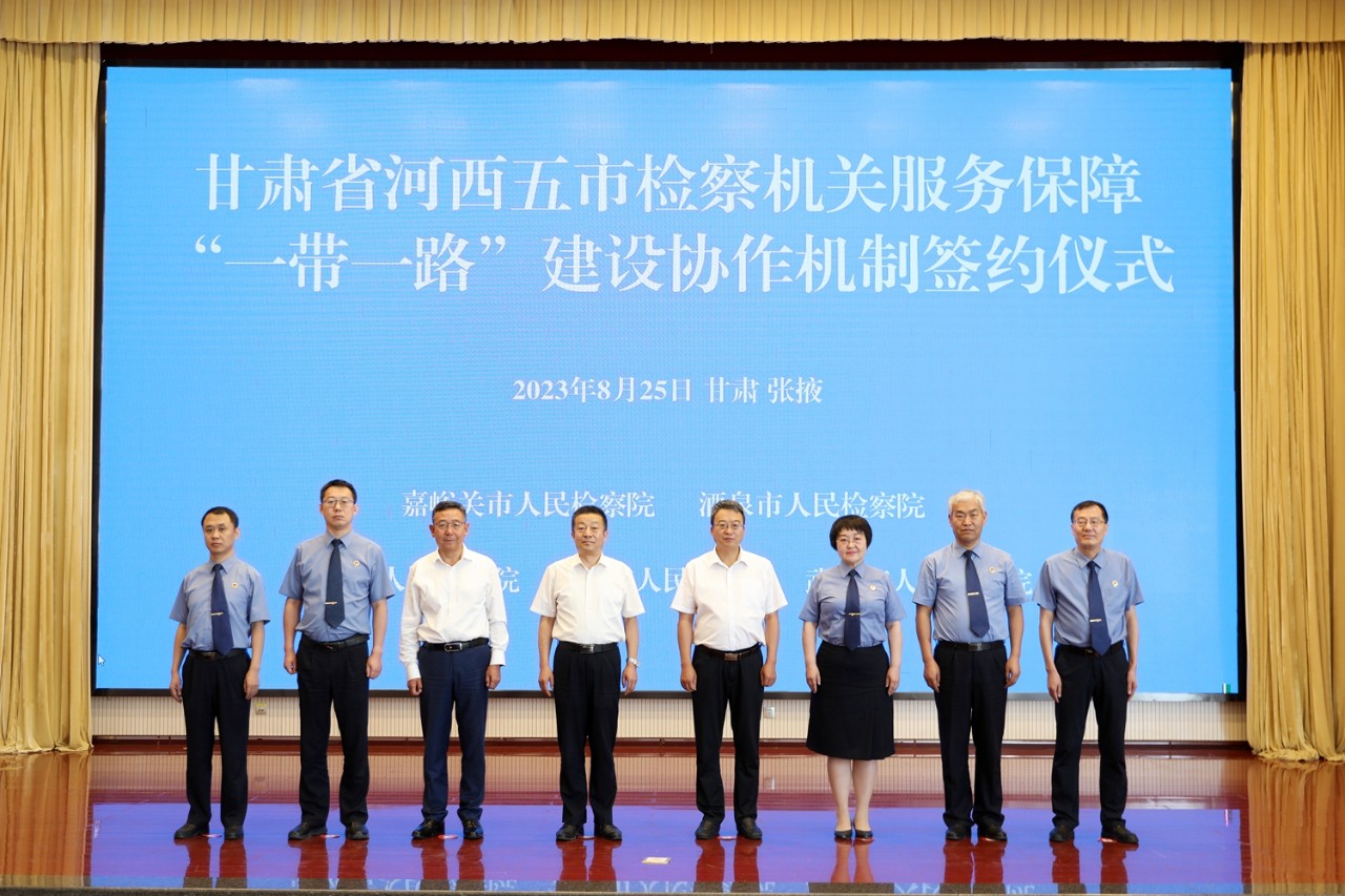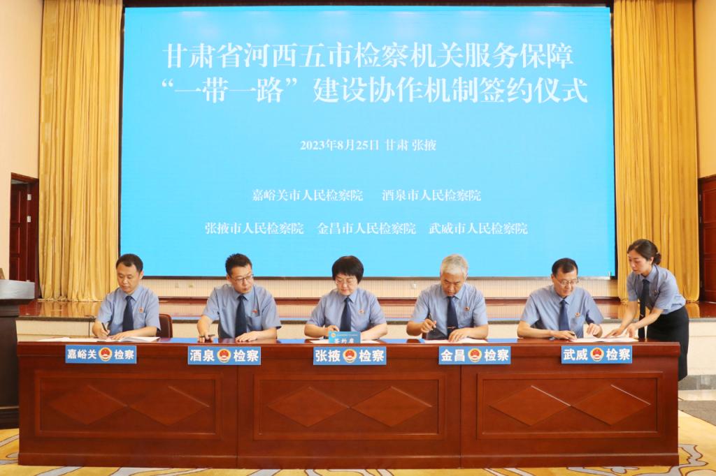 8月25日上午,张掖、酒泉、嘉峪关、金昌、武威五市检察机关在张掖市举行《河西五市检察机关服务保障“一带一路”建设协作配合机制的意见》(以下简称《意见》)签约仪式。澳门彩