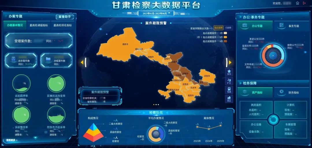 坚持“智慧、融合、创新”工作思路,秉持“决策与监管平台化、数据分析模型化”设计理念,经过近两年时间的研发、搭建平台,通过对办公系统、办案系统、统计系统等系统内生数据进行深度挖掘利用,实现了检察业务作战室、办案专题、办公专题、事务专题等大数据展示及分析功能,同时提供案件数据检索、检察业务生成报告等功能,为发现线索、分析趋势、辅助办案提供了数据支撑和技术保障,最大限度实现检察内生数据的真正价值。该平台荣获2022年全国政法智能化建设智慧检务创新案例。
