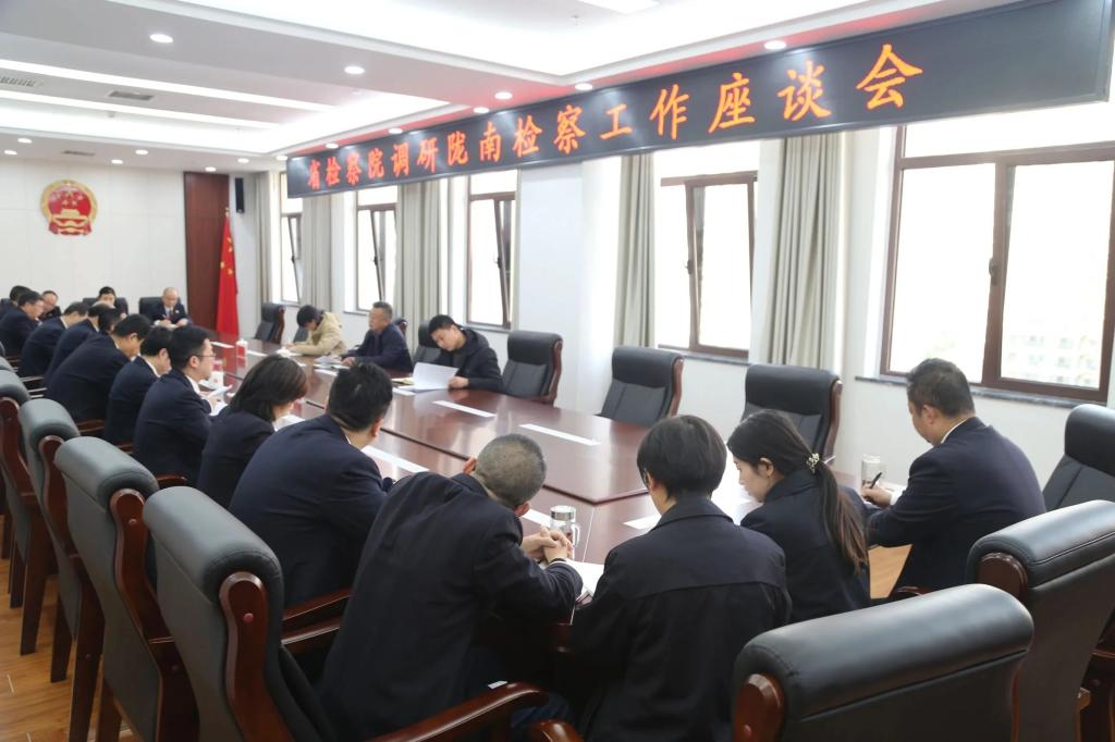 一级高级检察官俞新民到陇南市检察院督导调研检察工作。俞新民先后参观了该院12309检察服务中心、案管大厅,并围绕此次督导调研主题进行座谈交流。在听取汇报后,俞新民对陇南检察各项工作给予充分肯定,并要求陇南检察机关立足检察职能,以全省检察机关服务中心大局“七个更有力”为抓手,进一步找准切入点和着力点,细化完善工作举措,强化系统思维,推动“四大检察”整体部署、统筹推进;全面准确落实司法责任制,深化数字检察战略,为全省检察机关进入“全国第一方阵”提供陇南经验,贡献陇南方案。