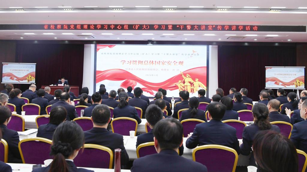 举办党组理论学习中心组(扩大)学习会暨“干警大讲堂”传学讲学活动,院党组书记、检察长沈涧以“学习贯彻总体国家安全观”为题为全省三级检察院干警讲授新年第一课,助力全面提升干警应对风险挑战、维护国家安全的能力。