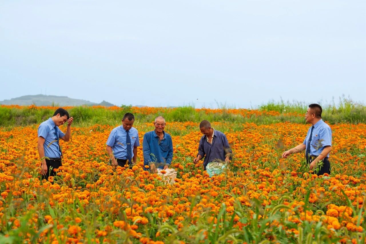 2023年8月17日,清水县检察院干警在红堡镇新坪村了解万寿菊采摘情况。乡村要振兴,产业是关键。为更有力服务保障乡村振兴,该院全面落实帮扶工作要求,在经济发展、产业规划、公益诉讼、司法救助、 法治宣传等方面构建多维度帮扶体系,坚持发展特色农业产业,点燃乡村振兴新引擎,把志愿服务“送”到家门口,把幸福生活“种”在群众心头。通过真情帮扶,以实际行动助农兴农,为村集体经济持续稳定增收,助力乡村全面振兴贡献检察力量。