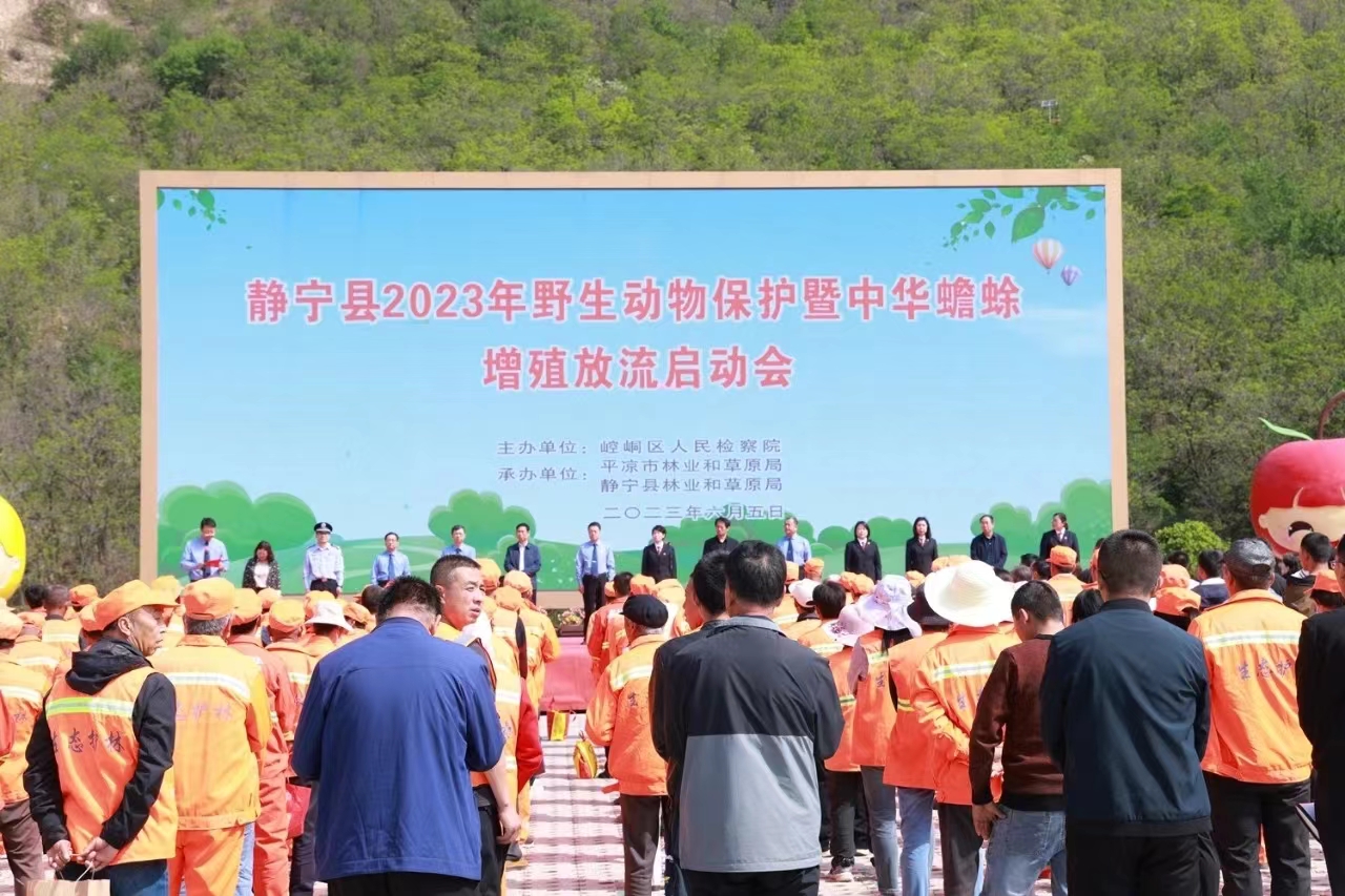 2023年6月5日,平凉市崆峒区检察院联合静宁县林业和草原局在静宁县35°苹果谷举行了“检察蓝守护生态绿,助力野生动物保护暨中华蟾蜍增殖放流启动仪式”,此次活动在确保科学、规范的前提下,把6000余只中华蟾蜍有序放流进35°苹果谷及东峡水库库区等地。活动期间,检察机关和法院干警向群众宣讲野生动物保护法律法规,发放宣传册,开展法律咨询,广泛宣传野生动物对促进生态平衡的重要性,增强群众保护野生动物意识,取得了良好的社会效果。
