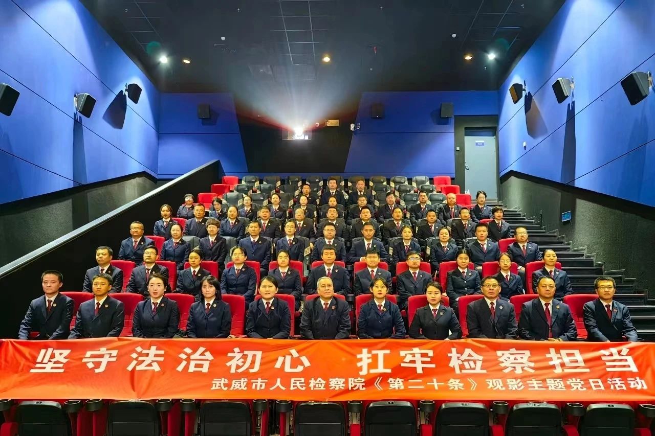 武威市检察院组织开展“坚守法治初心 扛牢检察担当”观影主题党日活动。观影结束后,大家纷纷表示,作为新时代检察干警,要时刻牢记肩负的使命与责任,积极弘扬“法不能向不法让步”的法治精神,坚定职业信仰,坚守职业操守,主动关切和回应人民群众的正义期待,以奋发有为的状态、高效务实的作风,高质效办好每一个案件,展现武威检察新作为。