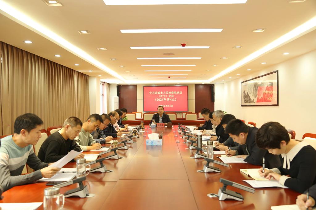3月4日,武威市检察院党组书记、检察长赵德金主持召开党组(扩大)会议,专题传达学习全省检察长会议及全省检察机关党风廉政建设工作会议精神,认真研究贯彻落实措施。会议要求,要对标定位,查找不足,明确改进提升工作的方向;要立足实际,追赶进位,不折不扣抓好贯彻落实,真正把“高质效办好每一个案件”落到实处;要严字当头,压实责任,深化全面从严管党治检工作,从源头上规范检察权行使,锻造政治过硬、能力过硬、作风过硬的检察铁军。