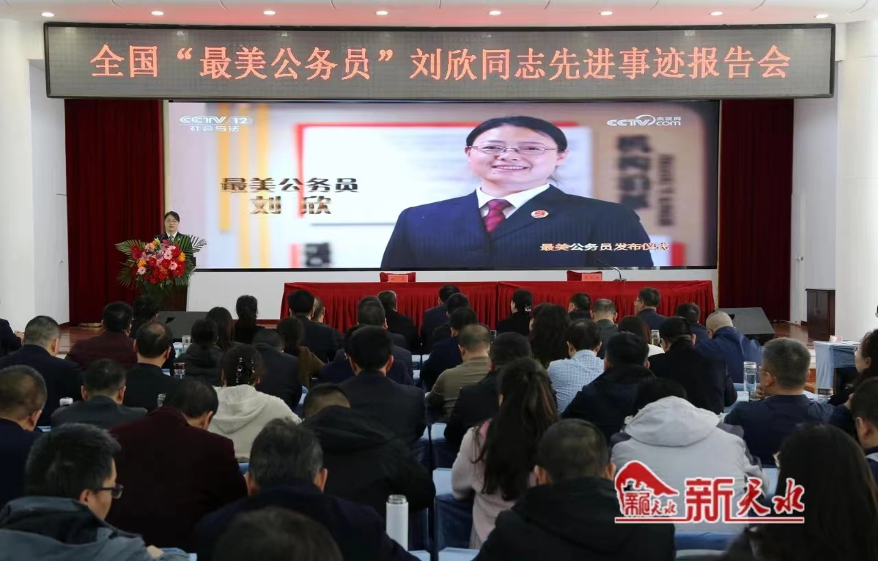 3月13日,全国“最美公务员”,天水市检察院第六检察部副主任、二级检察官刘欣先进事迹报告会在天水市委党校大礼堂举行,会议以视频会形式开至县区分会场,党校春季主体班全体学员、政法机关干警代表、各部门单位有关负责同志及乡镇机关公务员代表等近1500名公务员代表参会。