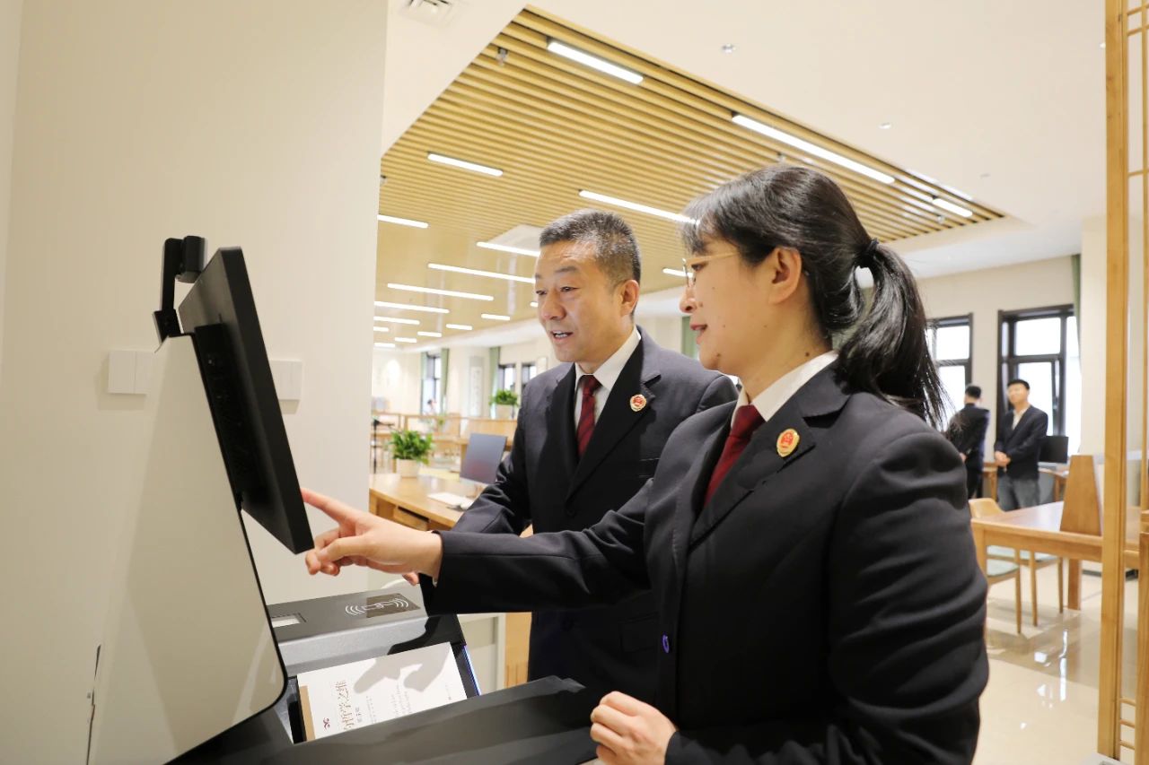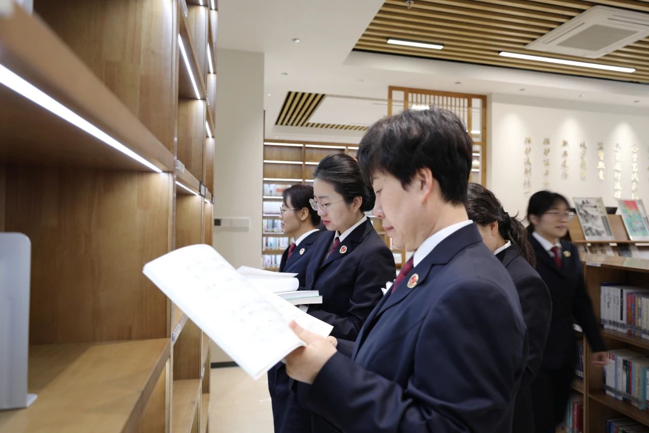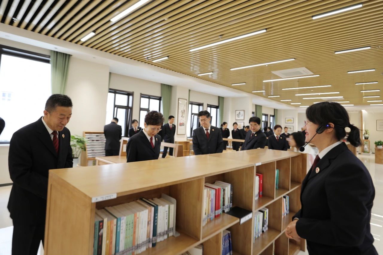 开馆仪式上,张学军在自助借还机上借出图书室第一本外借图书后,解说员带领大家参观图书室,直观了解图书室各功能区作用、图书种类、陈列情况及借阅操作流程,以方便机关干警在今后工作中借阅使用各类图书。