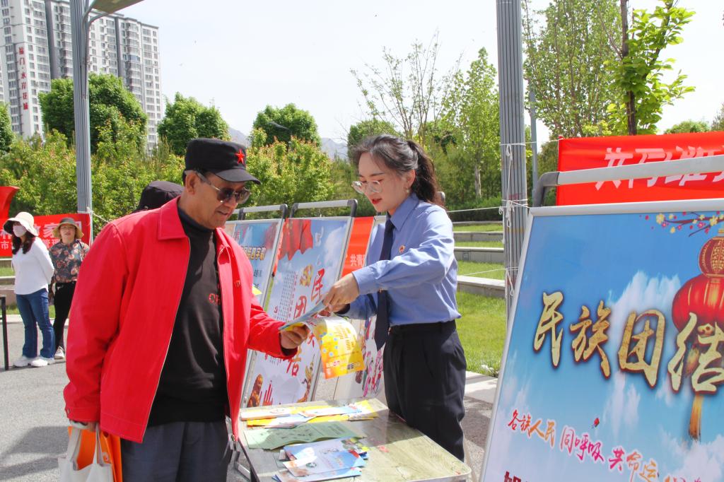 肃南县检察院在县中心广场开展民族团结进步宣传月活动,检察干警以社会热点难点问题为切入点,将民族团结与法治宣传相结合,引导群众树立休戚与共、荣辱与共、生死与共、命运与共的共同体理念。