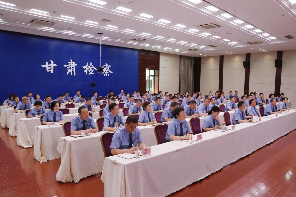 在家党组成员、一级二级高级检察官、特级检察官助理,以及省院机关全体干警在现场听课;各市州分院及基层检察院全体干警通过视频会议系统在分会场同步学习。