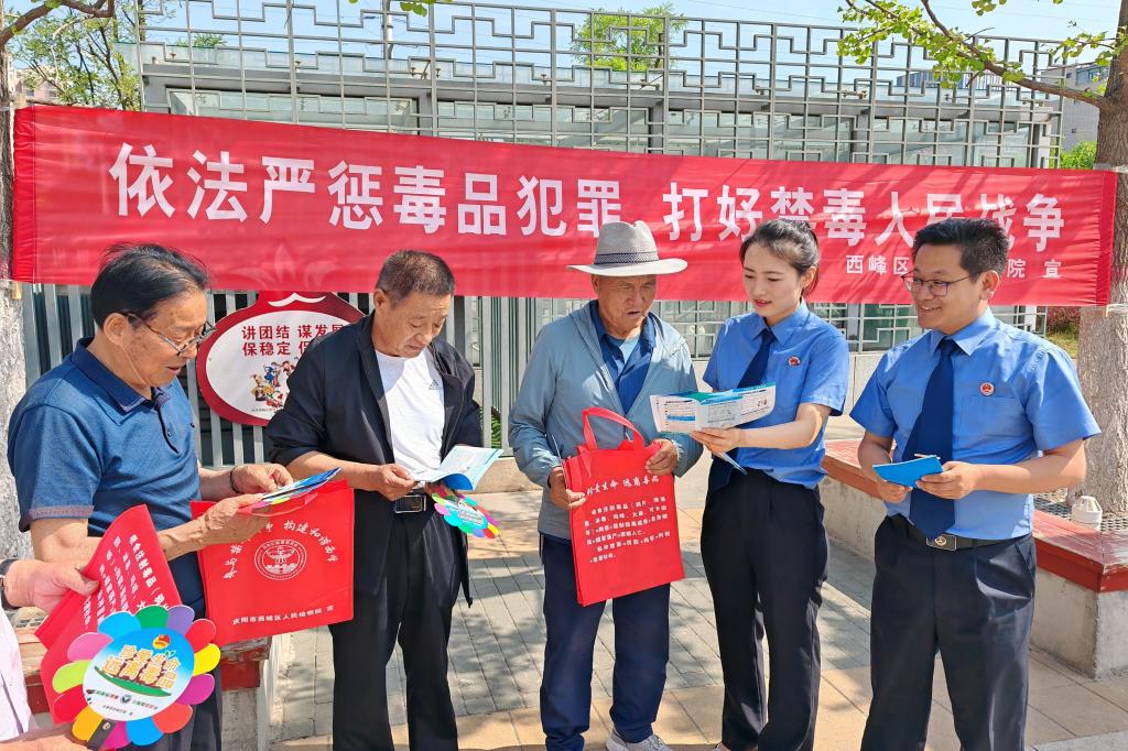 庆阳市西峰区检察院通过设置禁毒宣传点、悬挂横幅、发放宣传资料等方式在人防广场开展禁毒宣传活动,向群众普及禁毒法律法规,重点介绍被伪装成糖果、饮料等隐蔽性极强的新型毒品,使群众认识到毒品对个人、家庭、社会的危害。