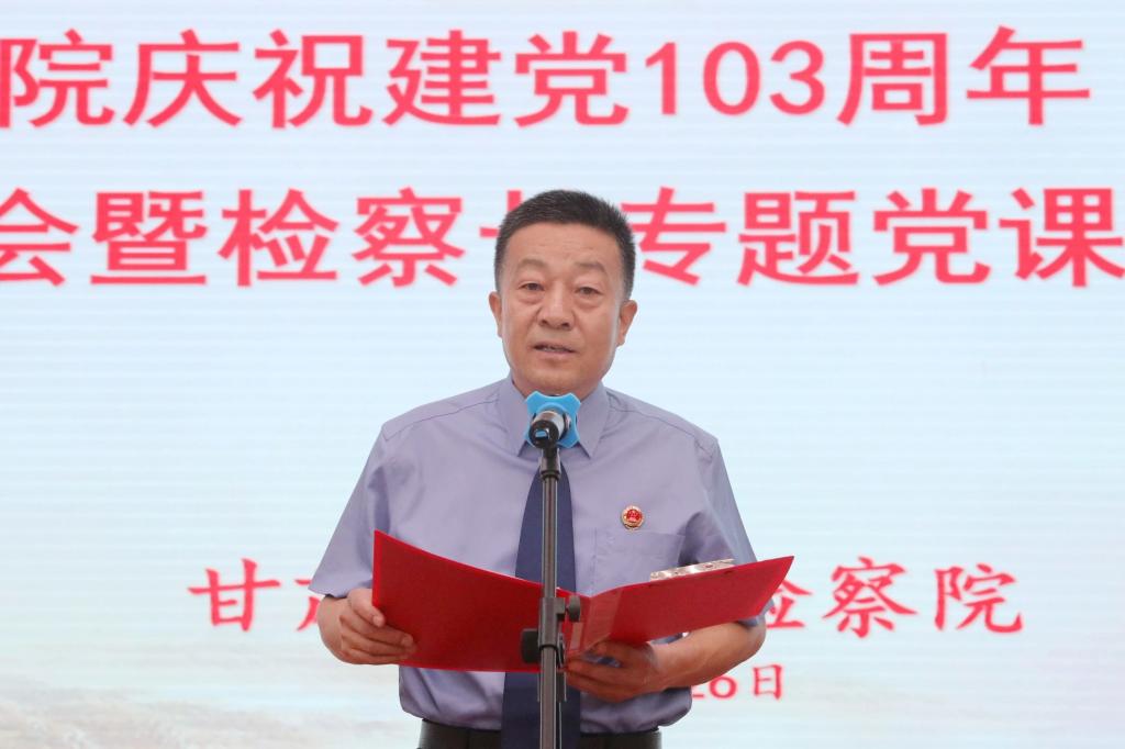 大会在庄严的国歌中拉开帷幕,沈涧带领全体党员干警重温入党誓词,党组成员、副检察长张学军宣读《关于表彰优秀共产党员、优秀党务工作者和先进党支部的决定》,在家党组成员为优秀共产党员、优秀党务工作者和先进党支部颁发荣誉证书和奖牌。