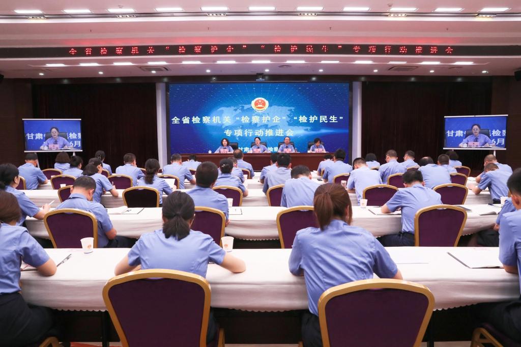 会议传达学习了最高检“检察护企”“检护民生”专项行动推进会会议精神,庆阳、陇南、天水、武威市检察院和玉门市检察院、张掖市甘州区检察院分别作经验交流。