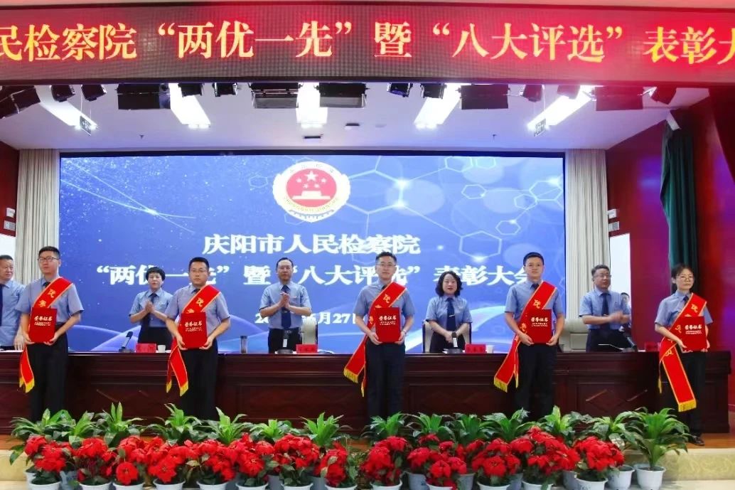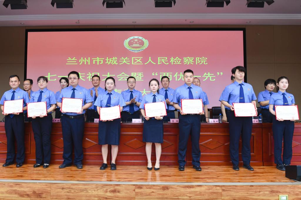、天水、庆阳、临夏、平凉、兰州安宁、清水等地检察院为先进党支部、优秀党务工作者、优秀党员等颁发了荣誉证书,激励广大党员干警学先进、赶先进、当先进,在新征程上一往无前、顽强拼搏、奋发向上、主动作为。