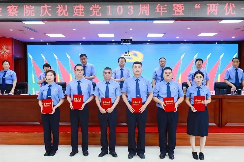 召开表彰大会、检察长讲党课、重温入党誓词、参观红色教育基地、举办主题演讲、开展帮扶共建、集体过“政治生日”……连日来,甘肃各地检察机关通过多种形式庆祝中国共产党成立103周年,扎实推进党纪学习教育,巩固拓展主题教育成果,常态化推动“三抓三促”行动、主动创稳行动和“铸忠诚警魂”活动走深走实。