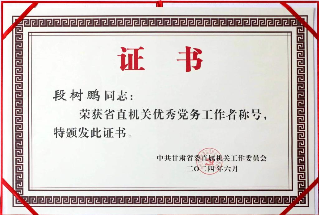 近日,甘肃省直属机关“两优一先”表彰大会在兰州召开,会上表彰了省直机关100名优秀共产党员、100名优秀党务工作者和60个先进基层党组织。其中,澳门彩