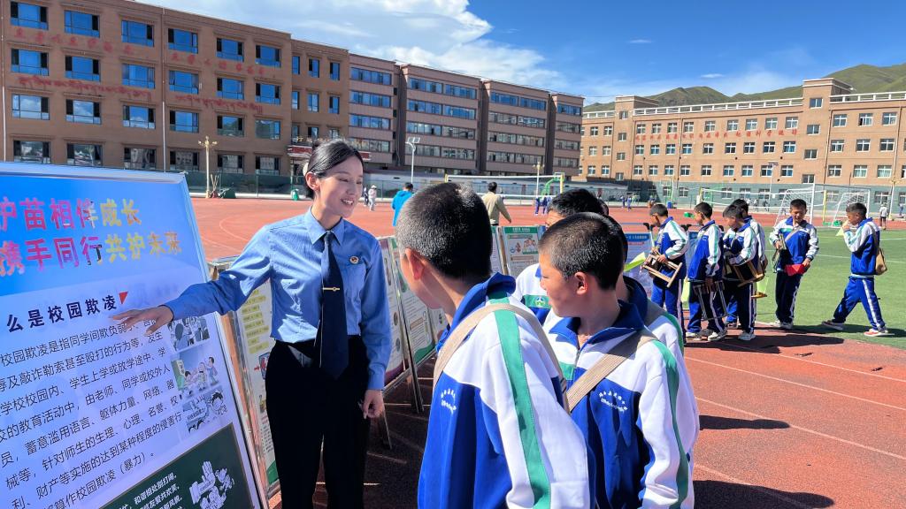 夏河县检察院联合县司法局、法院等相关部门开展“开学第一课”法治进校园活动。检察干警结合学生的年龄特征、心理特点和认知水平,分专题、分层次,以PPT、视频等形式采用汉藏双语向学生们讲解未成年人保护、防范电信网络诈骗、防范校园欺凌等相关法律法规,并现场传授防拐骗、防溺水等安全常识,提高学生自我保护意识。