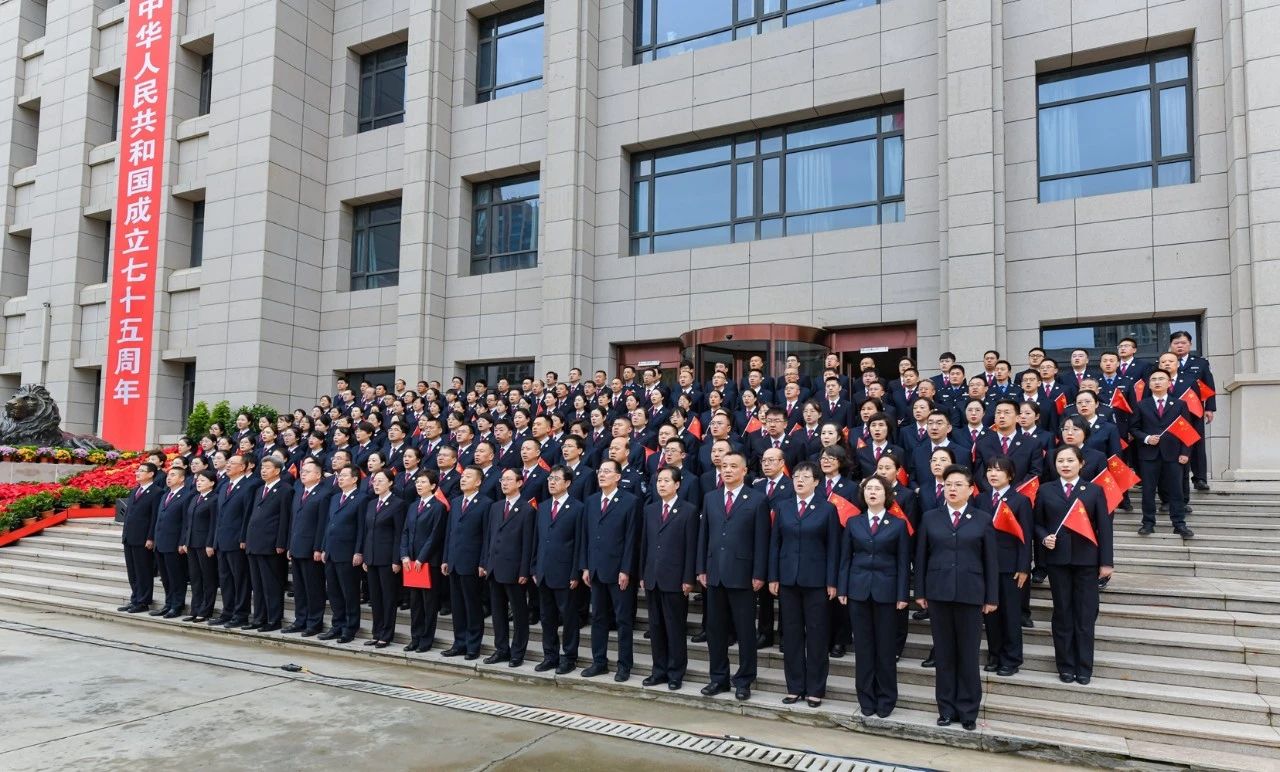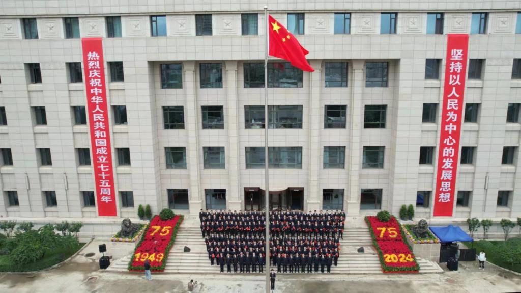 当鲜艳的五星红旗冉冉升起,全体干警在国旗下齐唱歌曲《没有共产党就没有新中国》和《歌唱祖国》,用嘹亮的歌声抒发爱党爱国的炽热情怀,祝福祖国母亲繁荣昌盛、国泰民安!