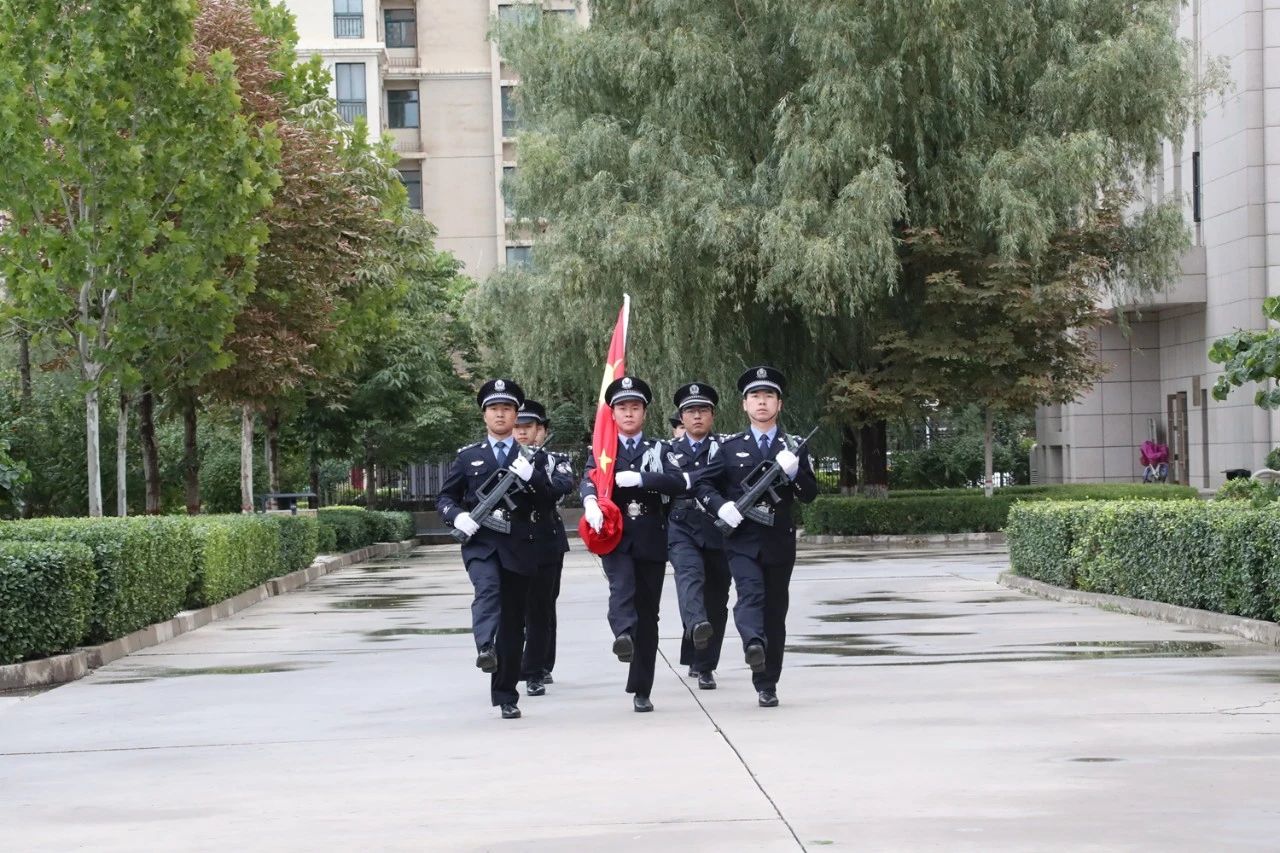 随着丁霞敏宣布升旗仪式开始,护旗队迈着矫健的步伐,护送鲜艳的五星红旗走上升旗台。全体干警肃然而立,怀着无比喜悦和自豪的心情,以饱满的精神和昂扬的斗志齐声高唱中华人民共和国国歌,共同见证这一庄严而神圣的时刻。