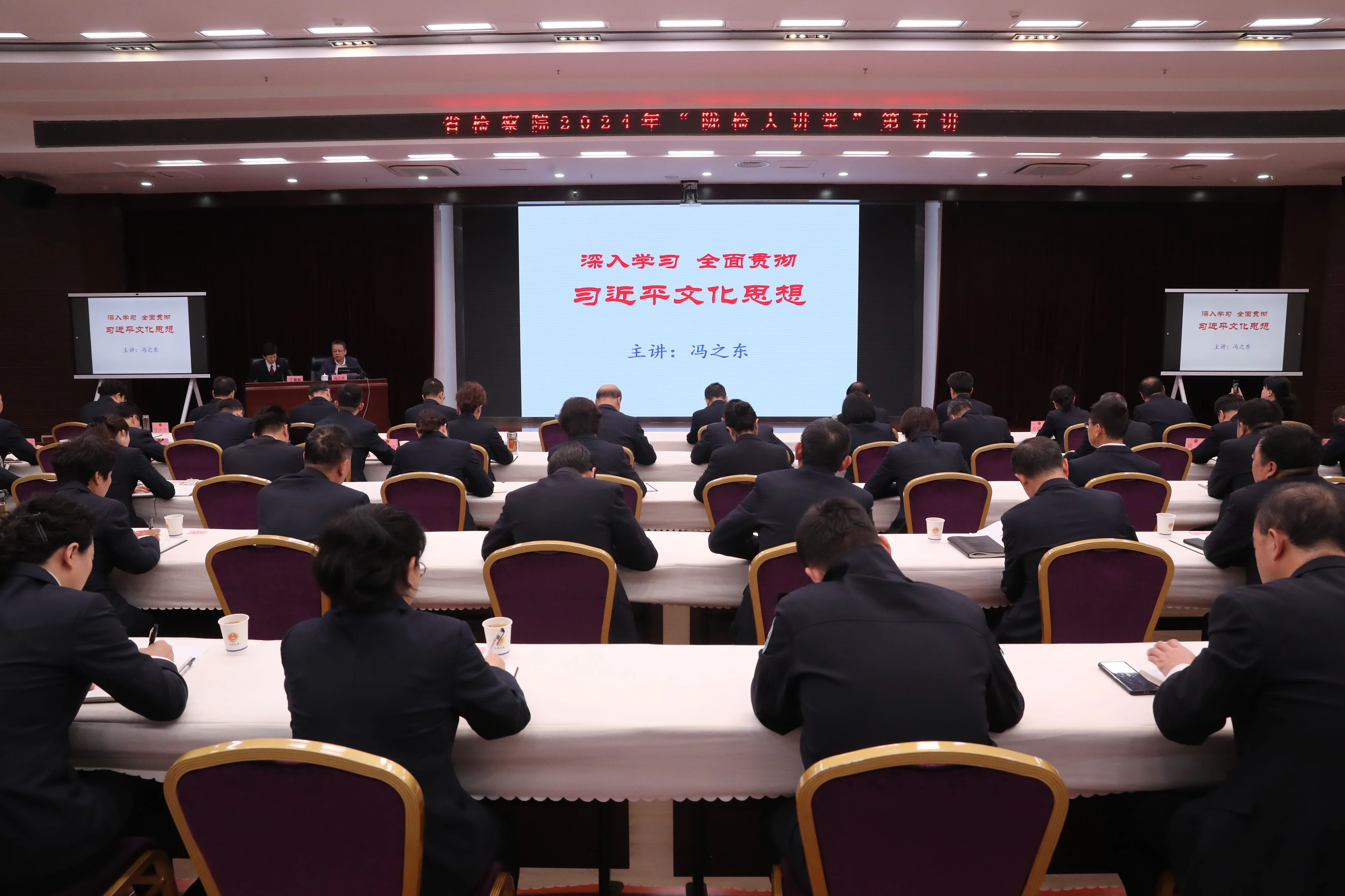 澳彩大讲堂第五讲邀请省委讲师团成员、省社会科学院马克思主义研究所所长冯之东以《深入学习 全面贯彻习近平文化思想》为题,围绕“全面贯彻落实习近平总书记视察甘肃重要讲话重要指示精神,以高质效检察履职为文化强国建设提供有力法治保障”进行专题辅导。澳门彩