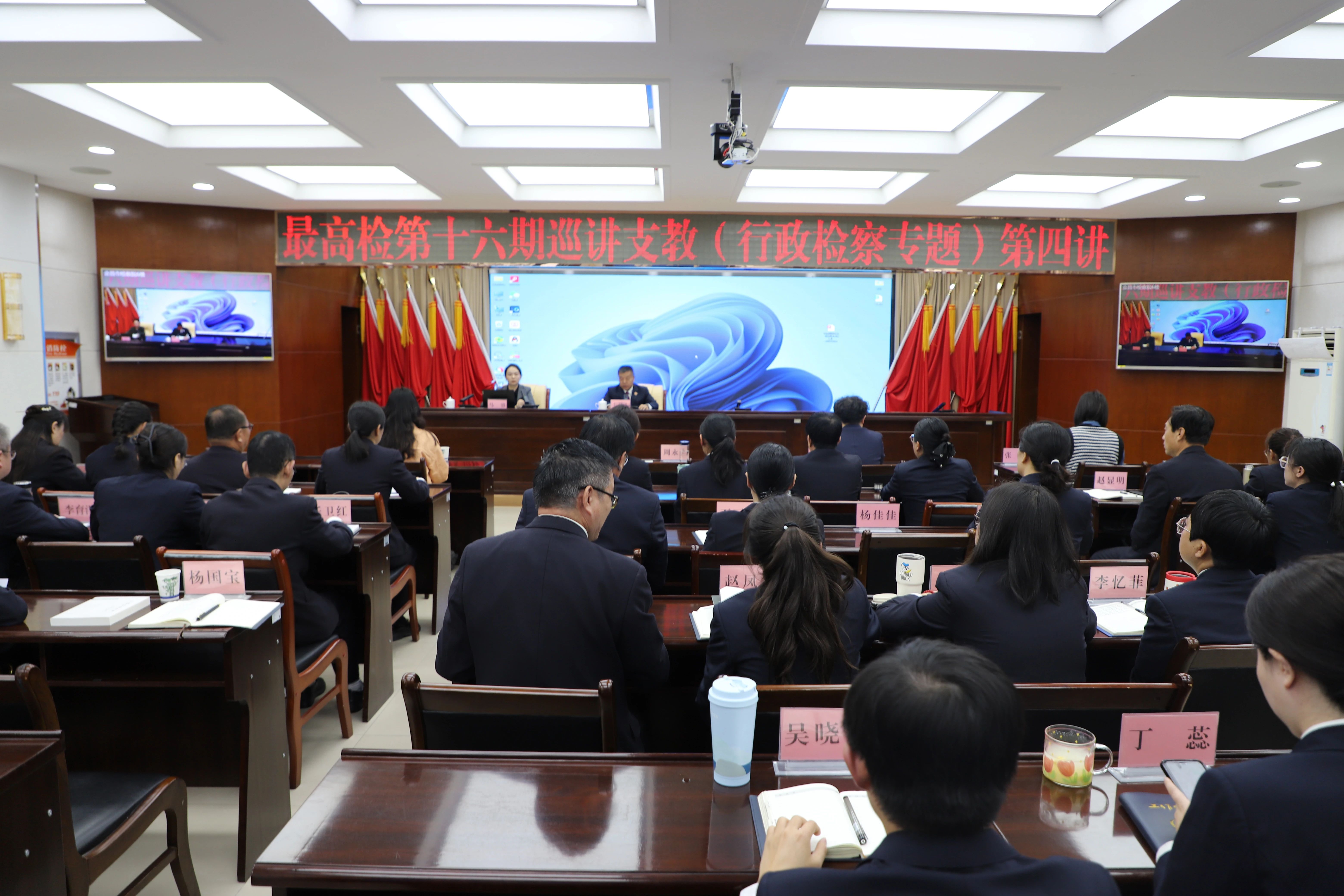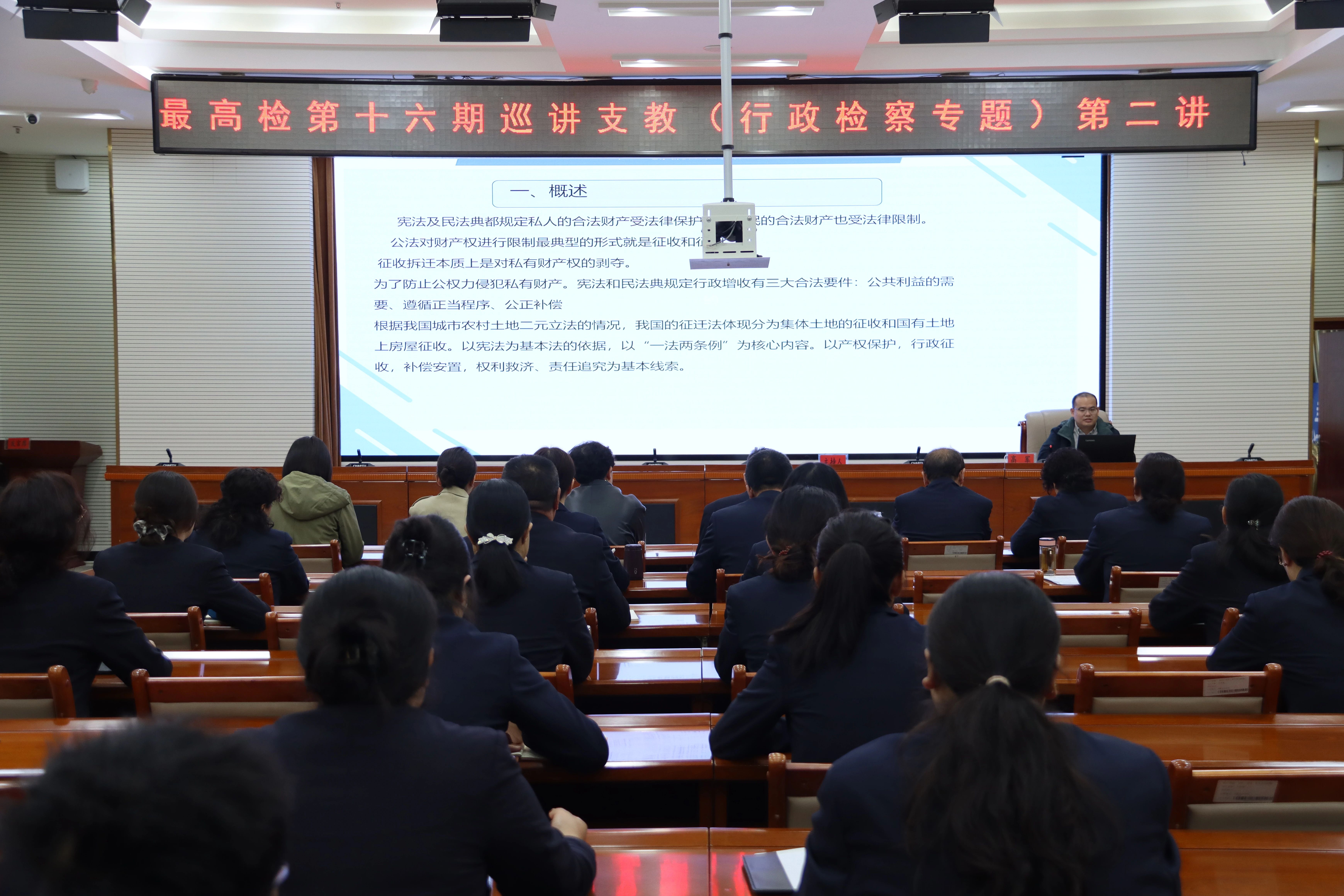 机关全体干警共130余人在现场听课;各市州分院及基层检察院全体干警共1200余人通过视频连线在分会场同步学习,共享能力提升的精神“大餐”。