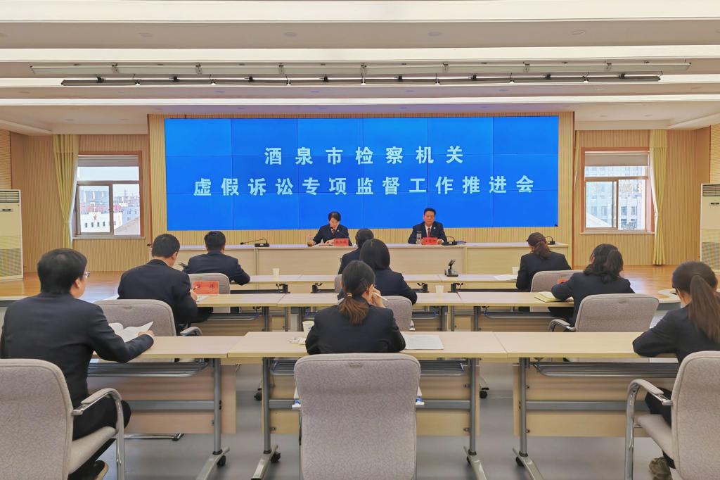 酒泉市检察院召开虚假诉讼专项监督工作推进会。会议要求,要细化工作措施,充分发挥检察服务中心、新媒体平台的作用,发现案件线索;坚持“一案多查”,深挖彻查背后的深层次问题,对已经查实的虚假诉讼违法情形,依法提出监督意见;持续关注传统高发领域,并将虚假诉讼专项监督行动与“检察护企”“检护民生”专项行动相结合,强化涉企、涉民生领域虚假诉讼的防范和惩治。