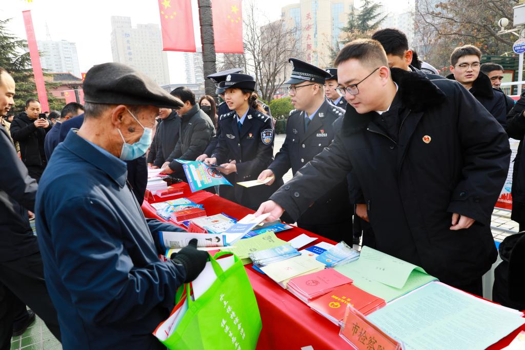 天水市检察院组织干警参加天水市2024年“12·4”国家宪法日暨宪法宣传周启动仪式,检察干警结合工作实际,围绕优化营商环境、知识产权保护、检察公益诉讼、司法救助等工作开展普法宣传,并就防范电信网络诈骗、养老诈骗等与群众生活息息相关的法律知识进行讲解。
