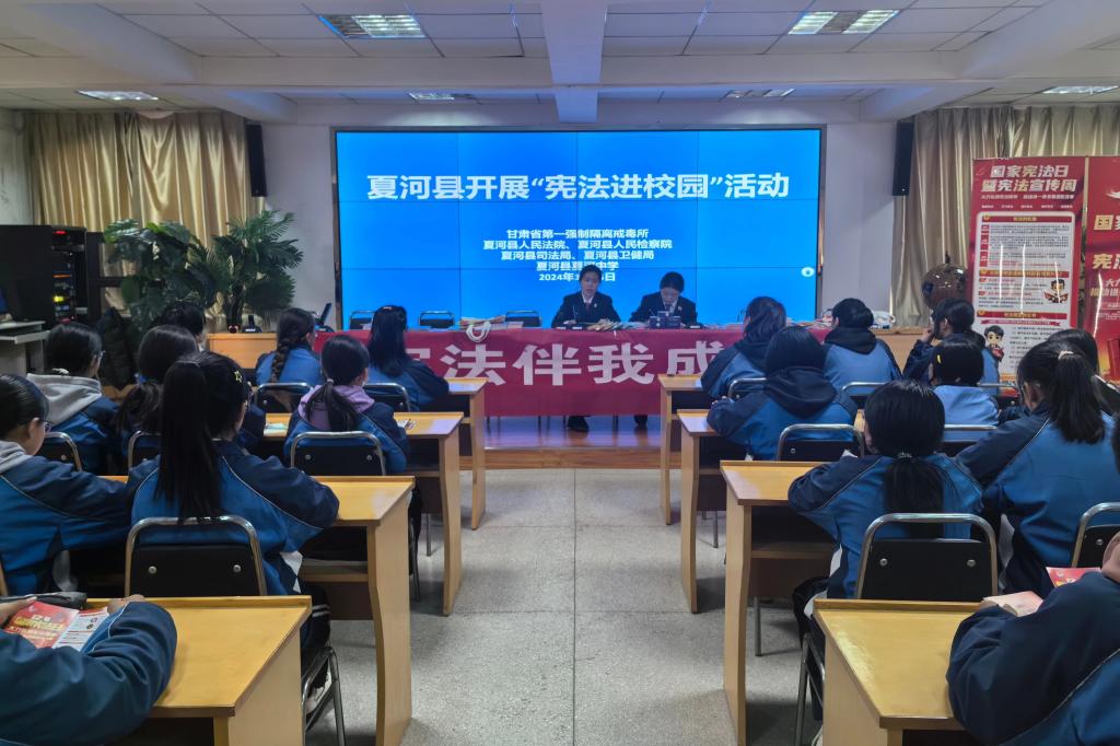 兰州市七里河区、敦煌市、碌曲县、夏河县检察院等组织干警到辖区中小学、技校开展宪法知识讲座,检察干警结合学生的年龄特点,通俗易懂地讲解宪法的发展历程、基本构成、重要地位及未成年人保护相关法律法规,呼吁同学们树立法治观念,切实维护自身合法权益,争做一名捍卫宪法尊严的“法律小卫士”。