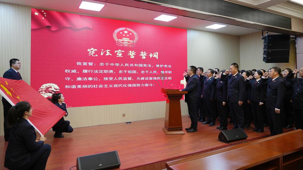 平凉市、古浪县、武山县、靖远县、高台县、民勤县、正宁县、张家川县、玉门市检察院等举行宪法宣誓仪式,干警纷纷表示,要聚焦宪法定位,履行监督职能,带头做宪法的忠实崇尚者、严格遵守者、自觉运用者、坚定捍卫者,以实际行动践行对党和人民最庄严的承诺,努力让人民群众在每一个司法案件中感受到公平正义。