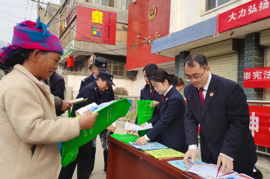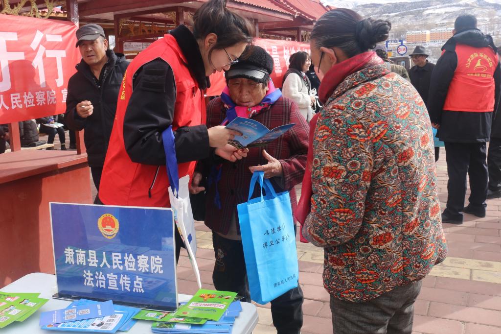 舟曲县检察院组织党员干警深入立节镇立节村、大川镇土桥子村开展“宪法进农村”主题宣传活动,检察干警宣传涉“三农”的相关规定、乡村振兴促进法等法律法规,引导村民学法知法、守法用法,并结合冬季防火、防范电信网络诈骗等知识进行讲解,守护群众人身财产安全。