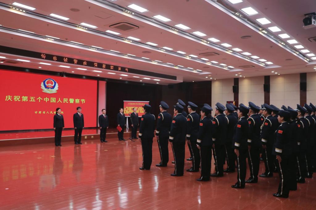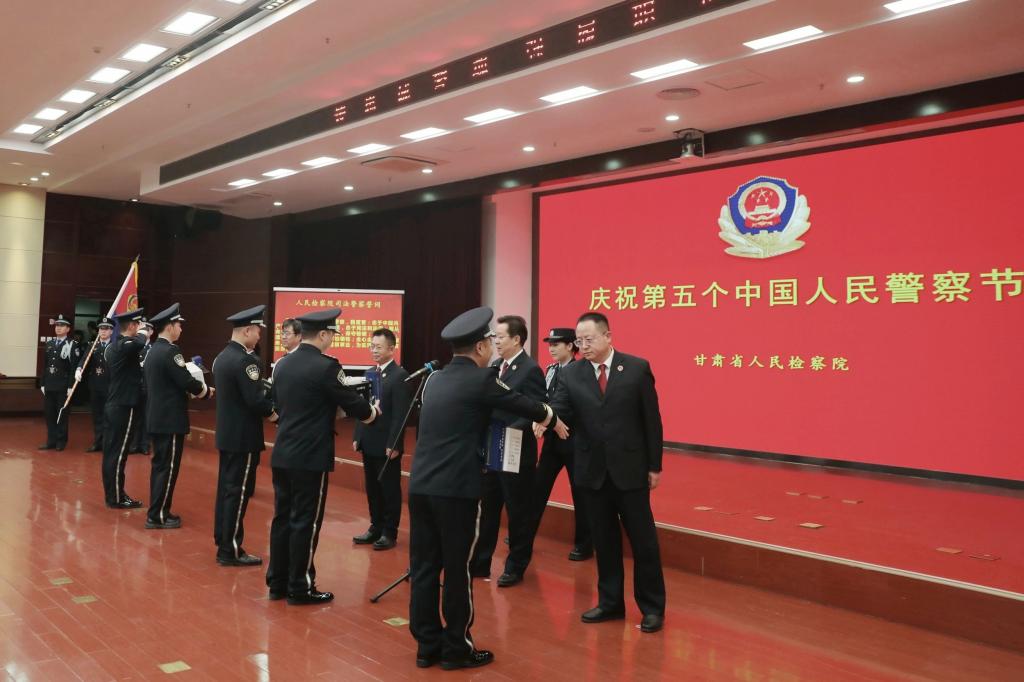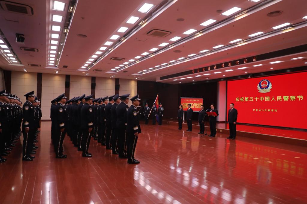 机关和部分市州及县区检察院司法警察、警务辅助人员代表向警旗敬礼,迎人民警察警旗入场,并面向警旗庄严宣誓。