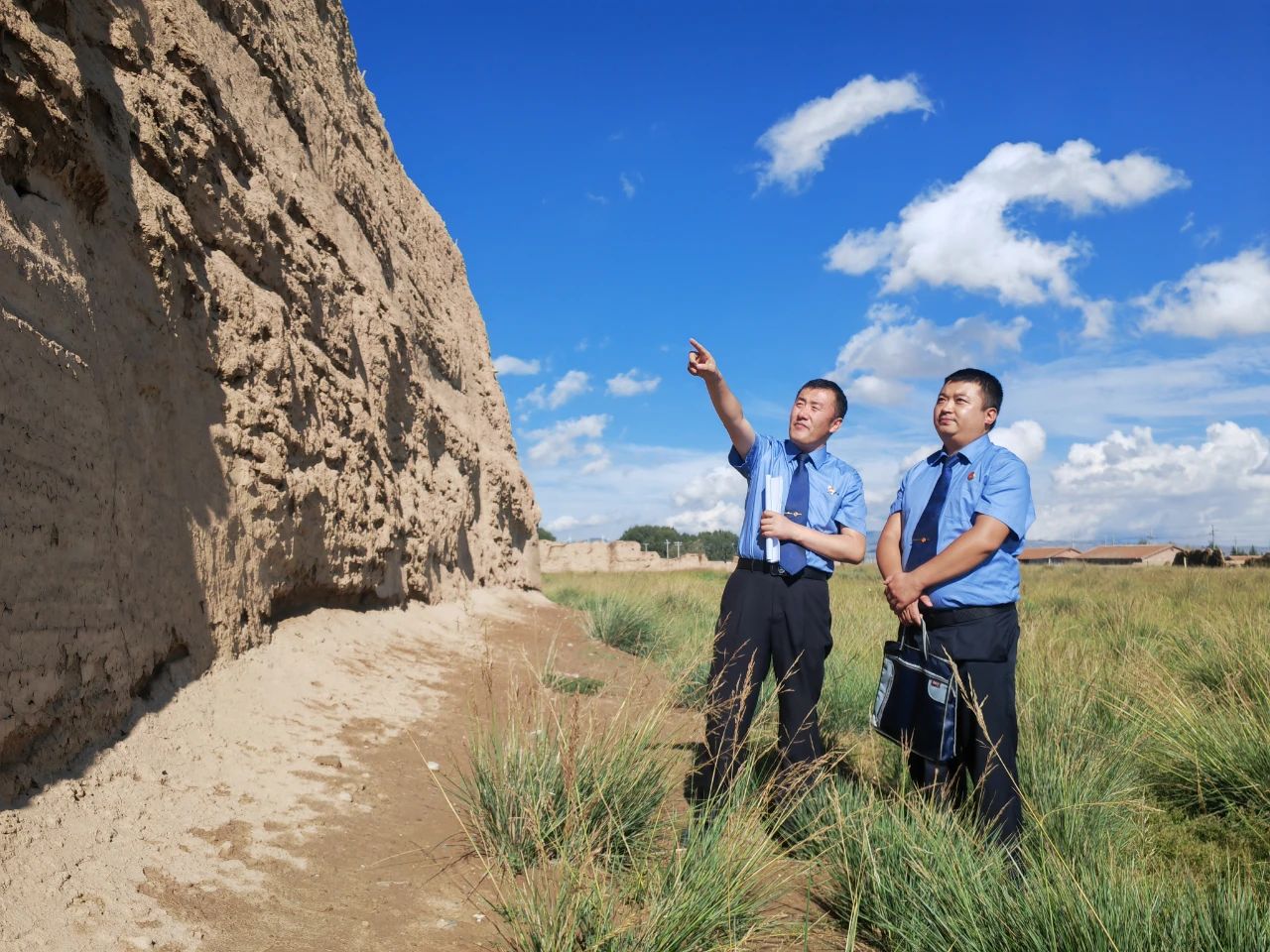 2024年8月,天祝县检察院干警就一起长城保护案进行“回头看”。