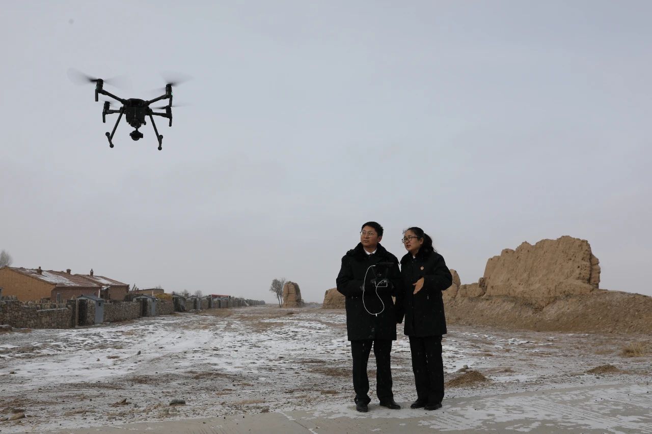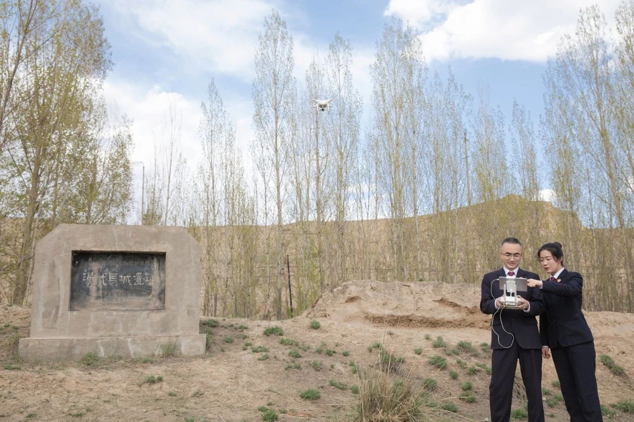2019年,山丹县检察院干警在明长城山丹硖口段遗址运用无人机进行公益诉讼拍摄取证。