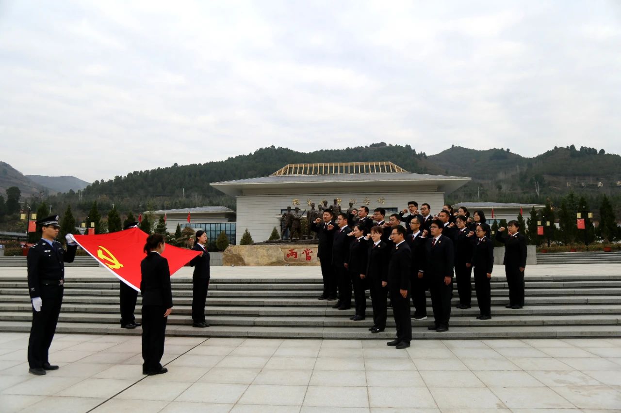 干警在两当兵变纪念馆前重温入党誓词。