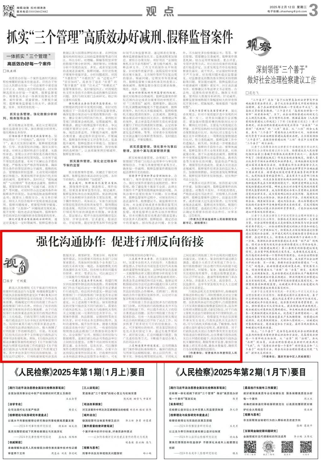 2025年2月12日,检察日报刊发理论文章《强化沟通协作 促进行刑反向衔接》。