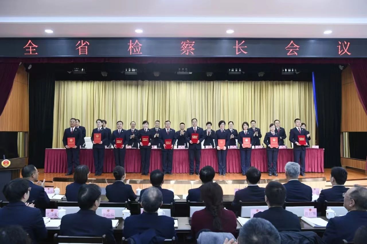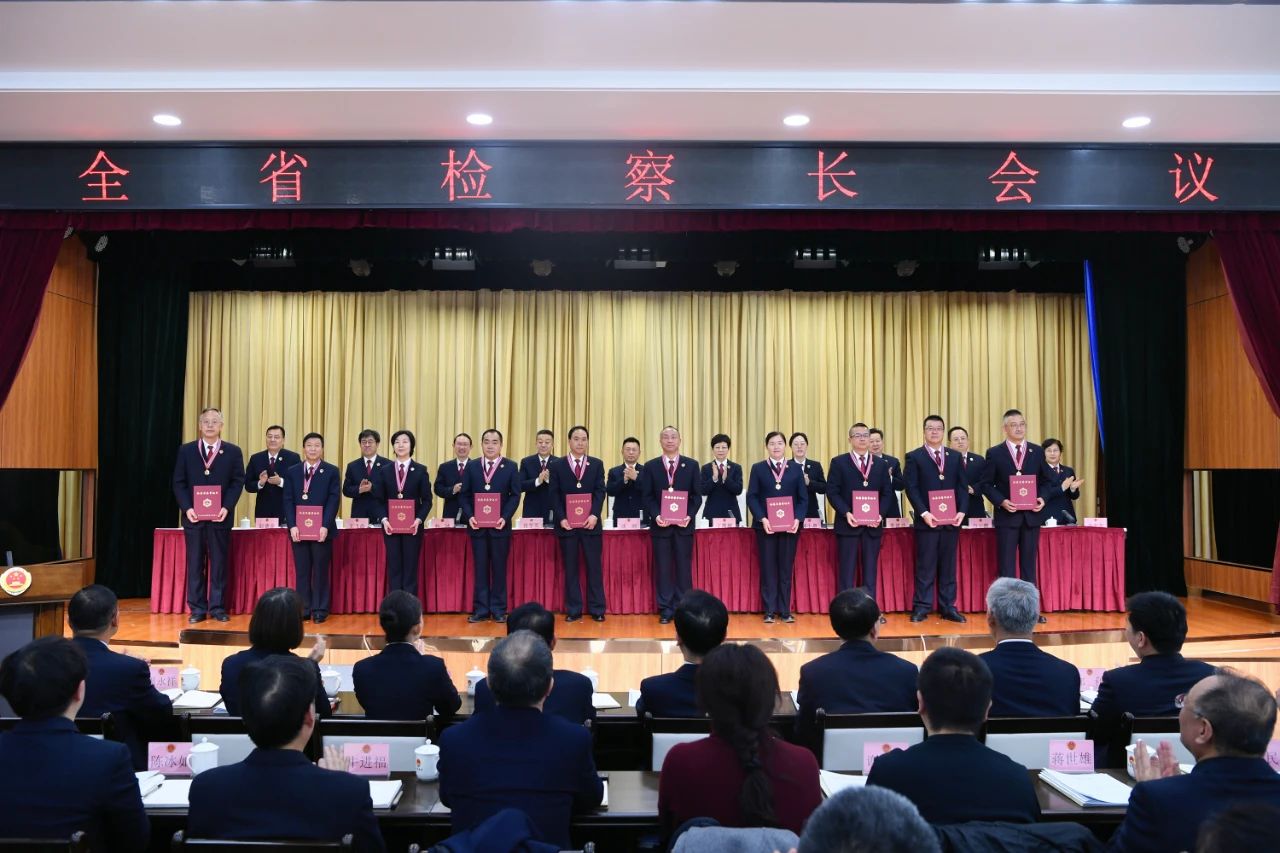 会议表彰了2024年度全省检察机关荣立二等功的集体和个人,并为从检30年的检察干警代表颁发检察荣誉章。