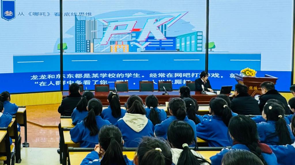 张掖市甘州区检察院未检检察官在市职业技术教育中心、市第一中学等学校,以《哪吒之魔童闹海》为背景,聚焦自护、防欺凌等法律知识,以案释法,引导同学们要“知敬畏、明边界”,呼吁同学们“不做冲动魔童,争做守法少年”。