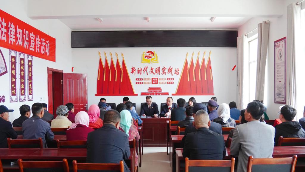 环县检察院组织干警在洪德镇许旗村的人大代表“家站点”开展普法宣传,检察干警手持民法典和宣传手册,将法律术语融合在一个个生动案例里,用“王婆说媒”“李家赡养”等身边趣事演绎法典条文,介绍检察职能,为乡亲们带来接地气的普法宣讲。